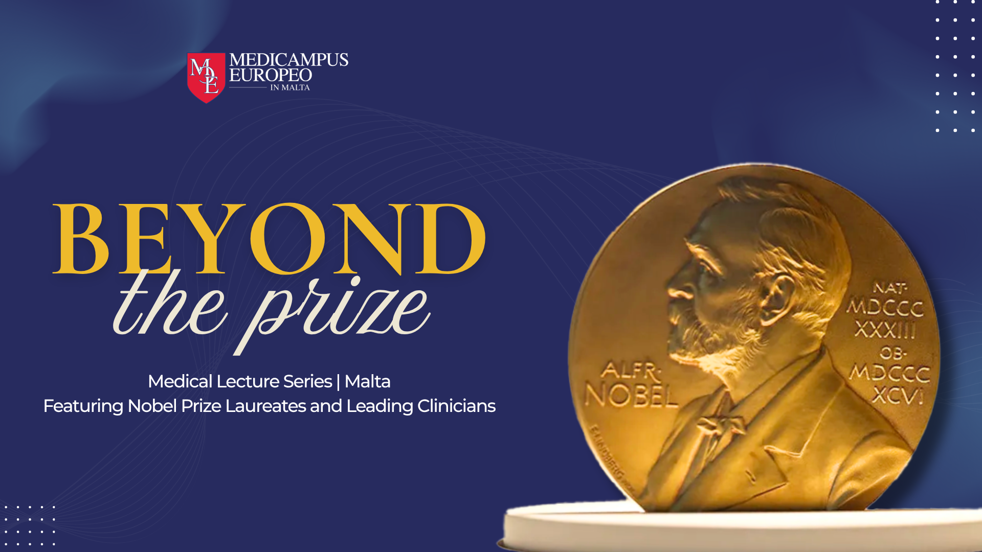 Beyond the Prize is the official medical lecture series of MediCampus Europeo, Faculty of Medicine in Malta, designed to enrich the academic experience of medical students through structured lectures delivered by distinguished figures whose work has shaped modern medicine and biomedical science.